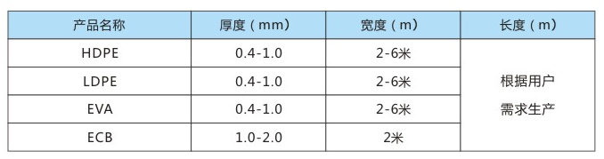 LDPE、EVA土工模:延伸率大,低溫性能好,柔軟易施工。