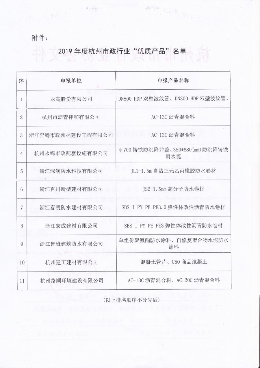 杭州市政優(yōu)質(zhì)產(chǎn)品文件(附)